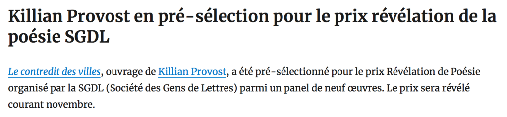 […] Pour lire la chronique en entier, cliquez ici : Une nouvelle saisissante : « Excusez-moi de vous déranger » de Killian Provost […]