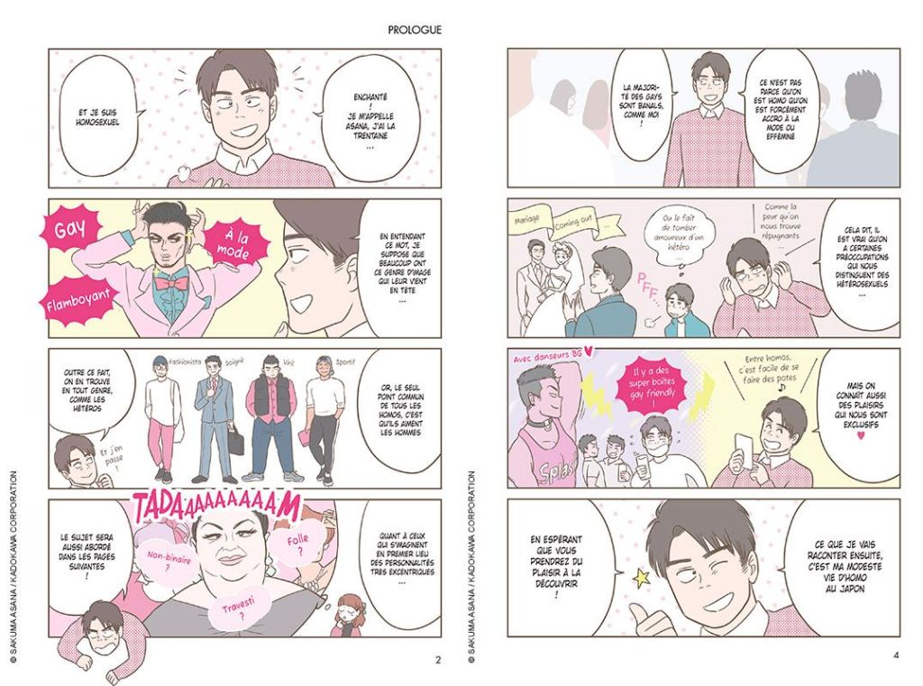 Ce récit illustré nous permet de partir à la rencontre d’une culture qui peut nous paraitre étrangère, à savoir celle de la communauté LGBT+. Asana accueille son lecteur avec bienveillance, prenant le temps d’explorer différentes facettes de cette large communauté et d’expliquer avec des anecdotes touchantes, drôles et originales ce que cela veut dire être gay au Japon pour lui.