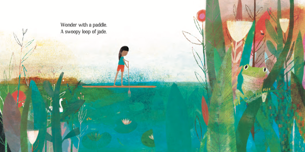 Par le texte, Meg Fleming explore le regard curieux, parfois naïf mais surtout frais des enfants. Ses courtes phrases convient à l’enchantement. A travers ses mots simples, l’autrice rythme une histoire faite d’émerveillements à portée des petites mains. Un album jeunesse doux et lumineux, aux illustrations pleines pages contemplatives, reflet d’un texte lyrique et naturellement poétique.